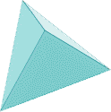 Tetraedro: Cuatro lados. El elemento asociado es el Fuego. Relacionado con la energía que permite emprender nuevas acciones o tener ideas renovadoras, también se le atribuye la capacidad de equilibrar la energía magnética polarizada.